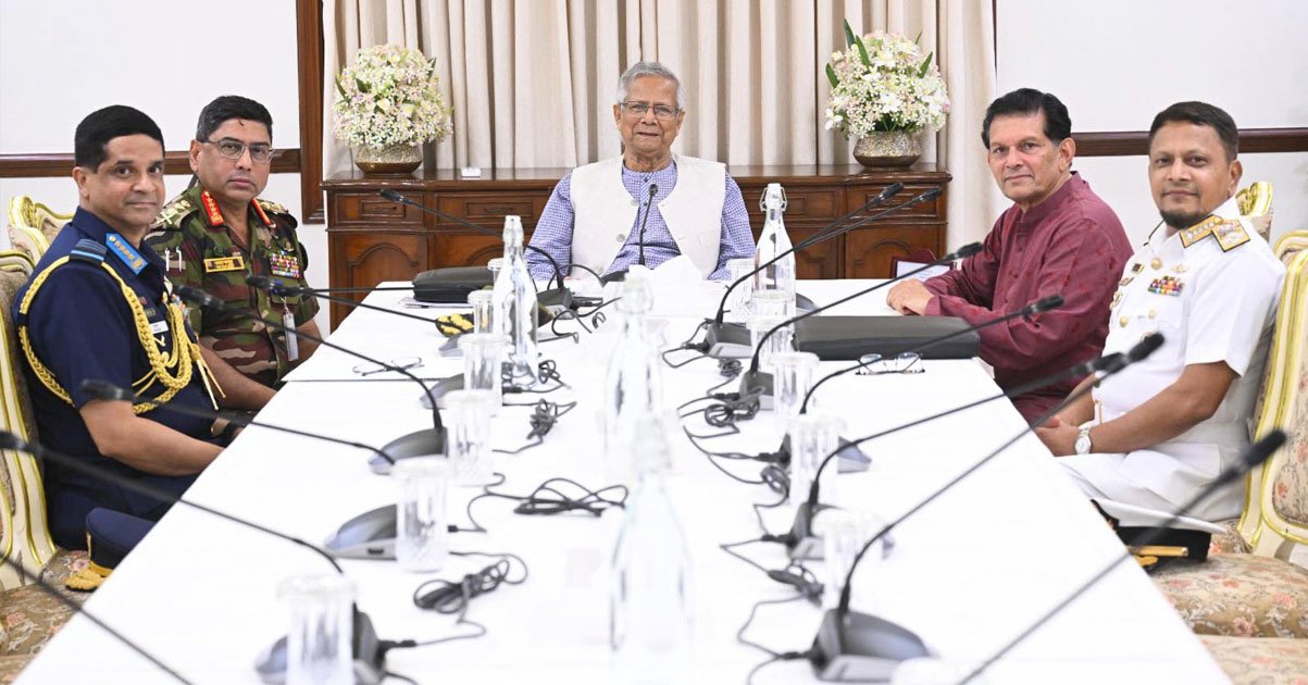 প্রধান উপদেষ্টার সঙ্গে তিন বাহিনীর প্রধানের সাক্ষাৎঃ উদ্দেশ্য আসন্ন নির্বাচন