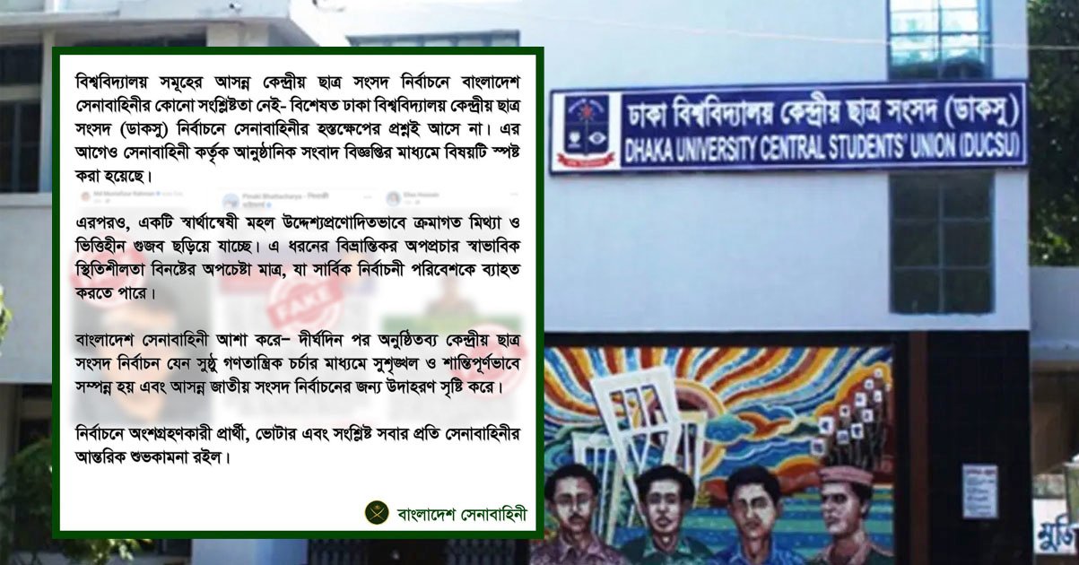 ডাকসু নির্বাচন নিয়ে সেনাবাহিনীর স্পষ্ট বার্তা